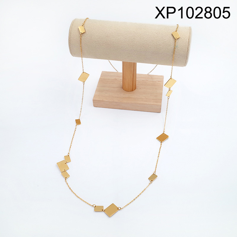 Level A Stainless Steel New Trendy Women Jewelry Rectangle Golden Sweater Chain Pendant