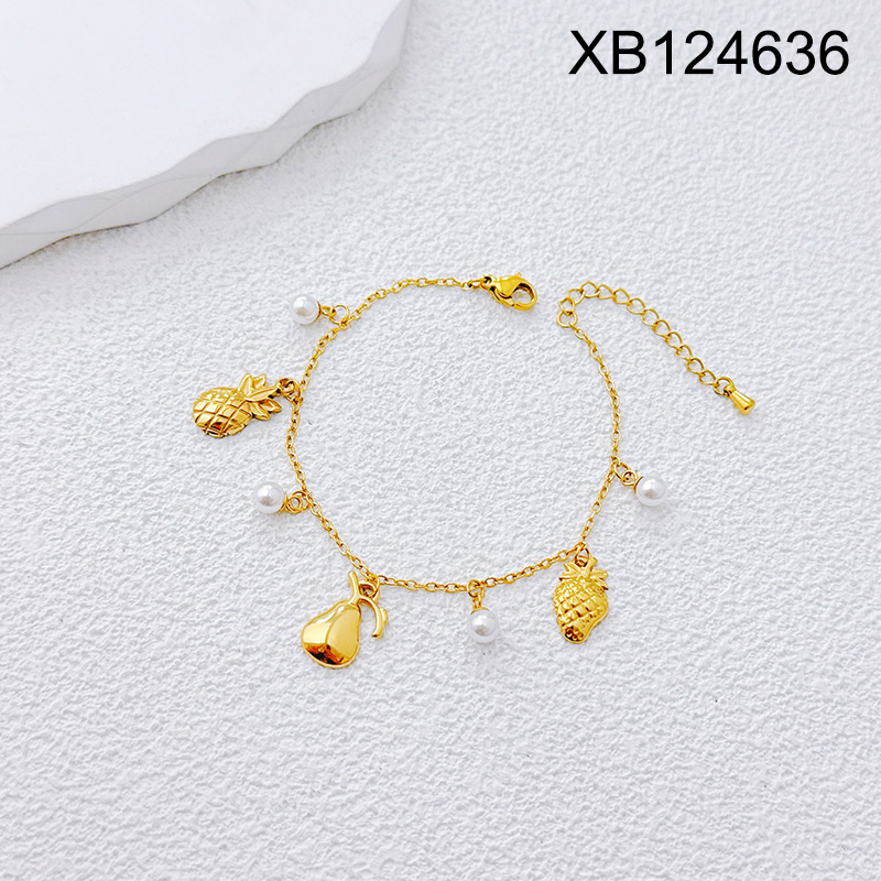 Level B Stainless Steel New Trendy Women Jewelry Pearl Style/Plastic Beads Summer fruit style Pineapple Pear Strawberry Golden Bracelet