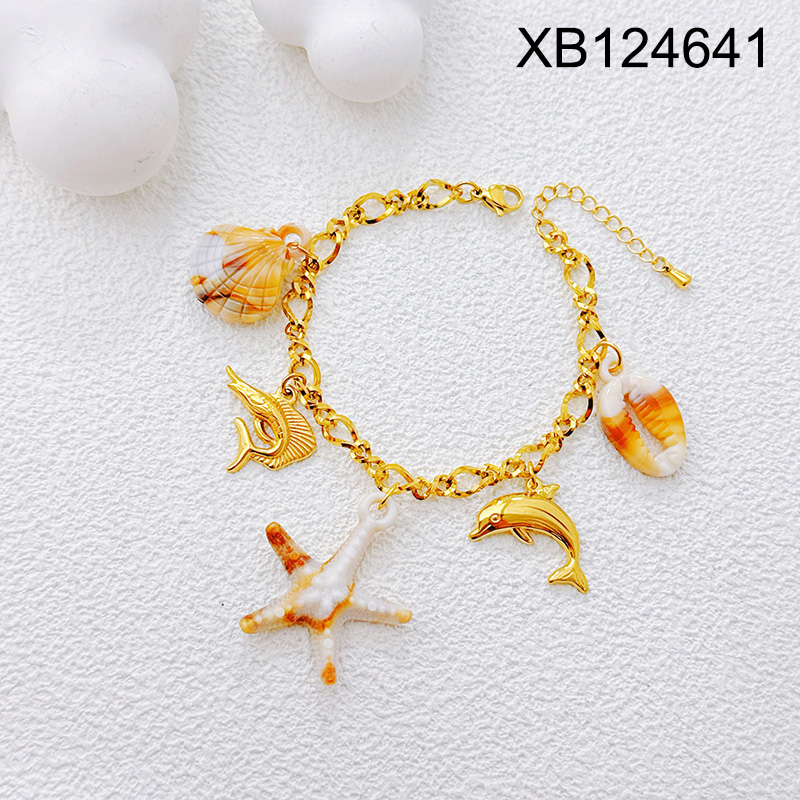 Home > Level B Stainless Steel New Trendy Women Jewelry Summer beach Animal Starfish Dolphin Shark Shell Golden Bracelet