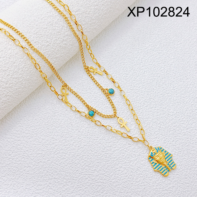 Home > Level B Stainless Steel New Trendy Women Jewelry Two Layers Chain Pharaoh of Egypt Golden Pendant
