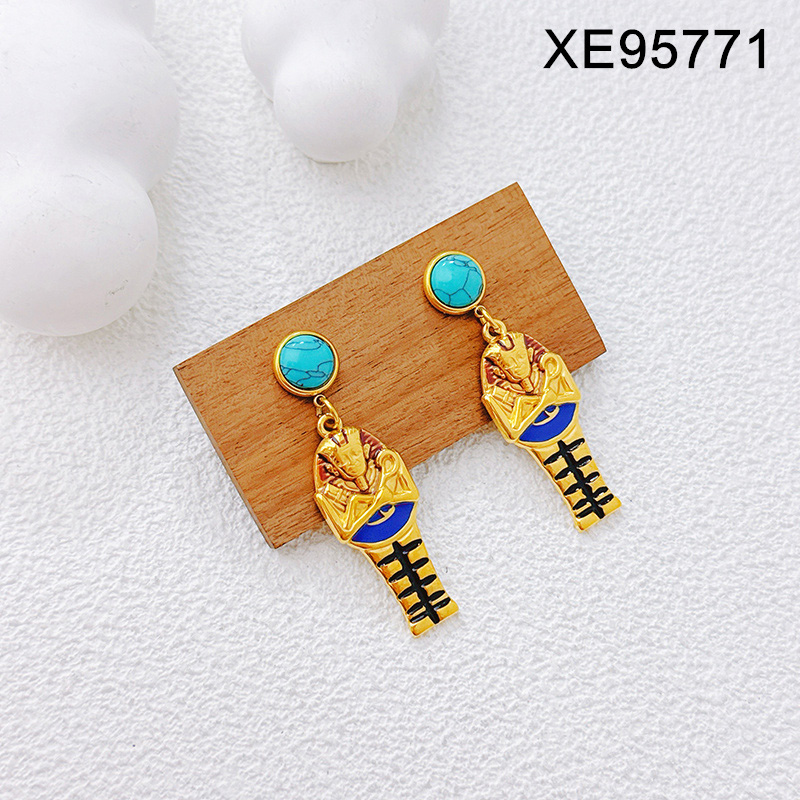 Home > Level B Stainless Steel New Trendy Women Jewelry Pharaoh of Egypt Golden Earrings
