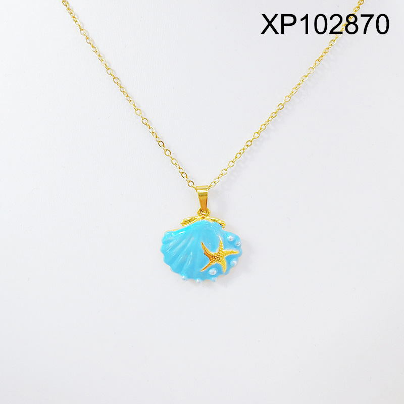 Home > Level B Stainless Steel New Trendy Women Jewelry Summer beach Drip Oil/Enamel Animal Shell Starfish Golden Pendant