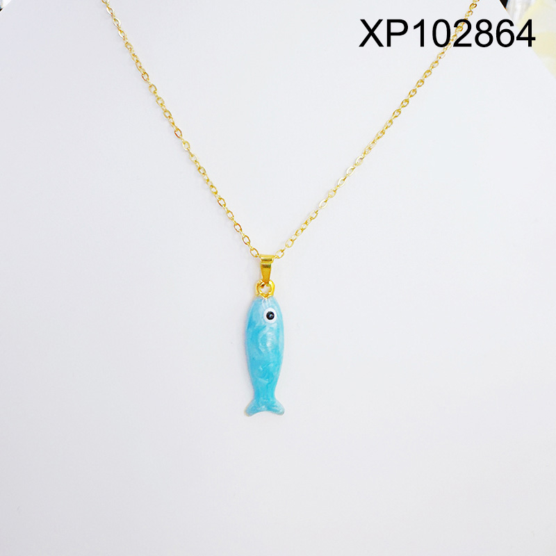 Home > Level B Stainless Steel New Trendy Women Jewelry Summer beach Drip Oil/Enamel Animal Fish Golden Pendant