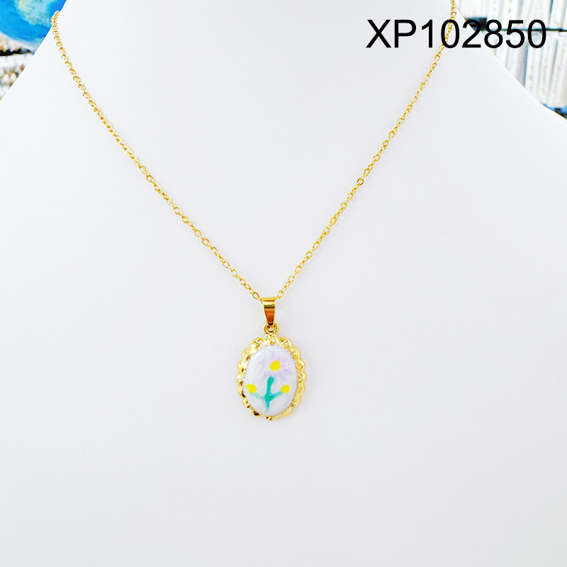 Home > Level B Stainless Steel New Trendy Women Jewelry Drip Oil/Enamel Oval Flower Golden Pendant
