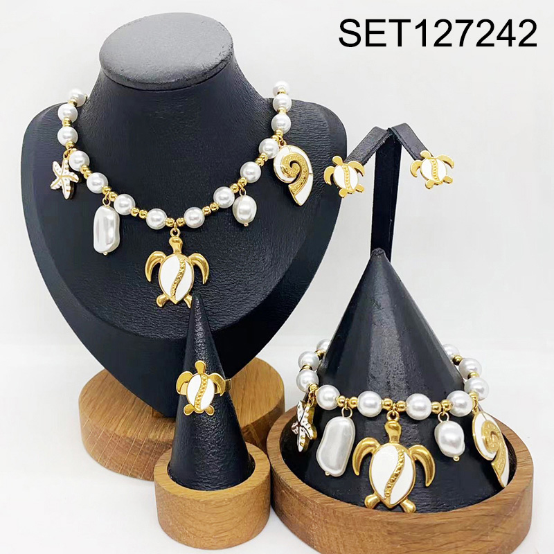 Level B Stainless Steel New Trendy Women Jewelry Summer beach Animal Turtle Starfish Conch Golden 4pcs SET