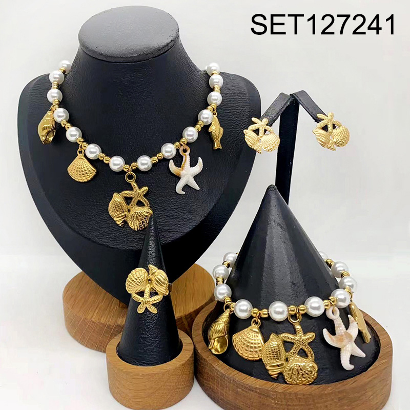 Level B Stainless Steel New Trendy Women Jewelry Summer beach Animal Starfish Shell Conch Fish Golden 4pcs SET