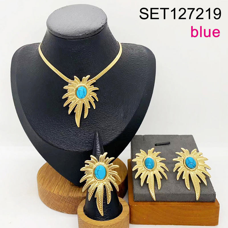 Level B Stainless Steel New Trendy Women Jewelry Leaf Golden 3pcs SET