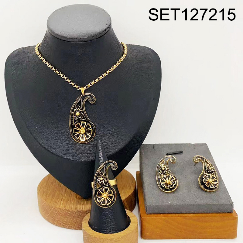 Level B Stainless Steel New Trendy Women Jewelry Water Drip Flower Golden 3pcs SET