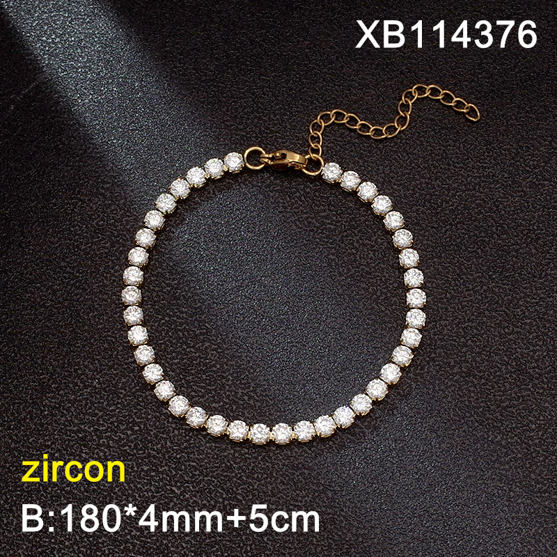 Home > Stainless Steel Jewelry New Trend White Zircon Diamond Tennis Chain Golden Bracelet