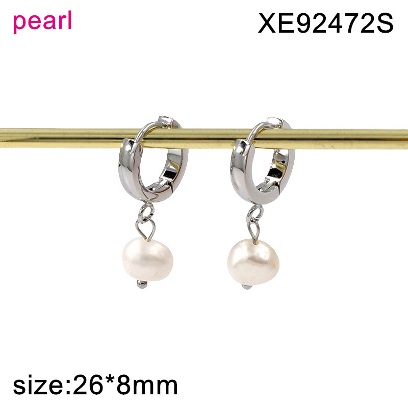 Home > Level A Stainless Steel Jewelry New Trendy Pearl Hoop Earrings