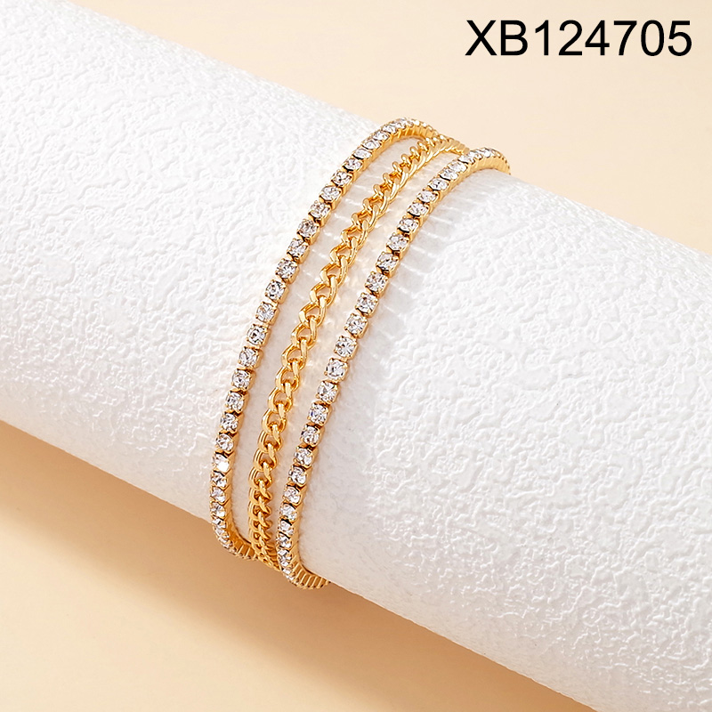 Home > Level B Stainless Steel New Trendy Women Jewelry Three Layer Chain Rhinestone Golden Bracelet