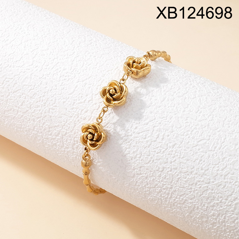 Level B Stainless Steel New Trendy Women Jewelry Bamboo joint Flower Golden Bracelet