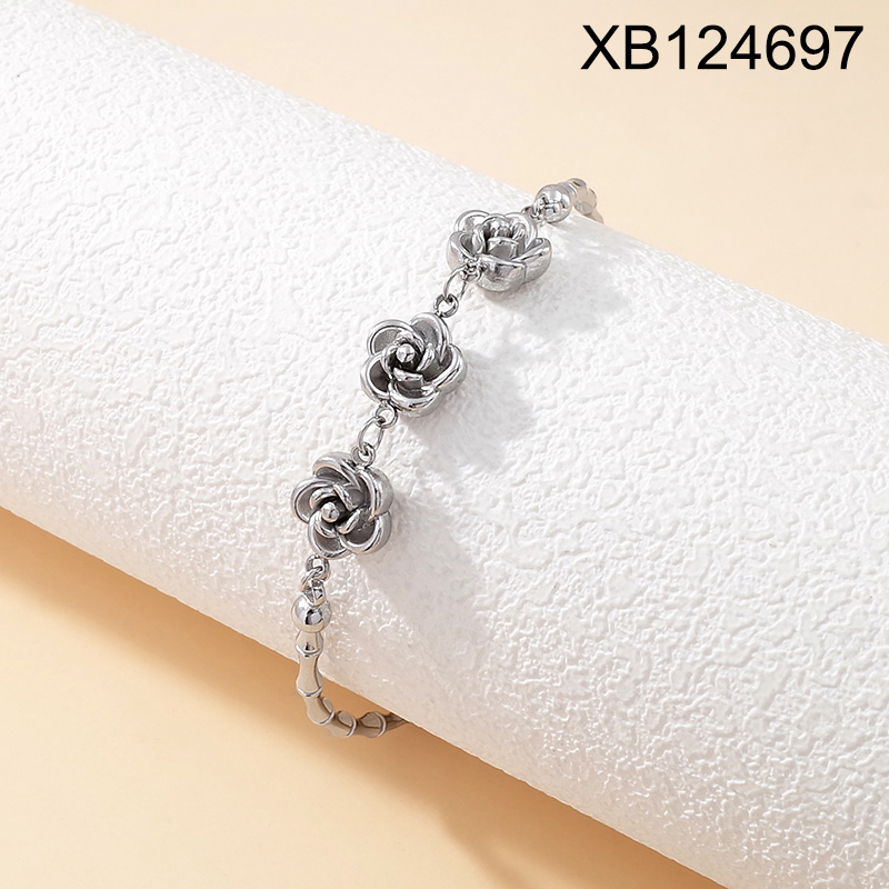 Level B Stainless Steel New Trendy Women Jewelry Bamboo joint Flower Steel color Bracelet