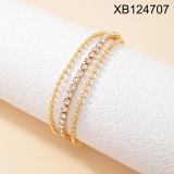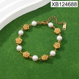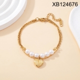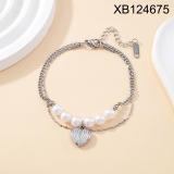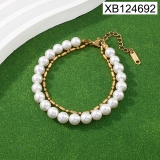 Level B Stainless Steel New Trendy Women Jewelry Two Layers Chain Pearl Style/Plastic Beads Steel color Bracelet