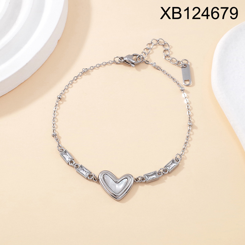 Level B Stainless Steel New Trendy Women Jewelry Heart Steel color Mother's Day Bracelet