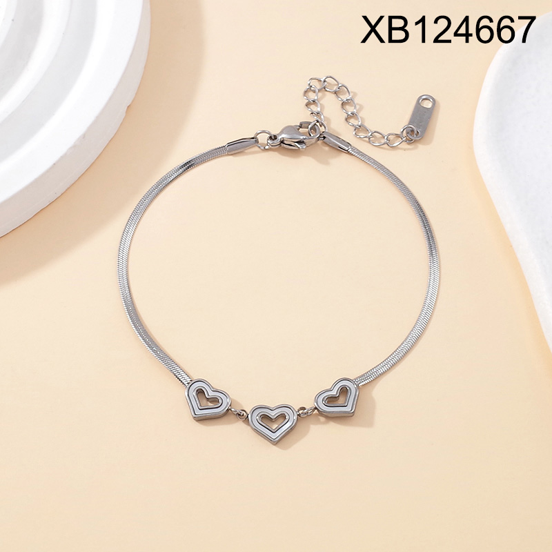 Level B Stainless Steel New Trendy Women Jewelry Heart Steel color Mother's Day Bracelet