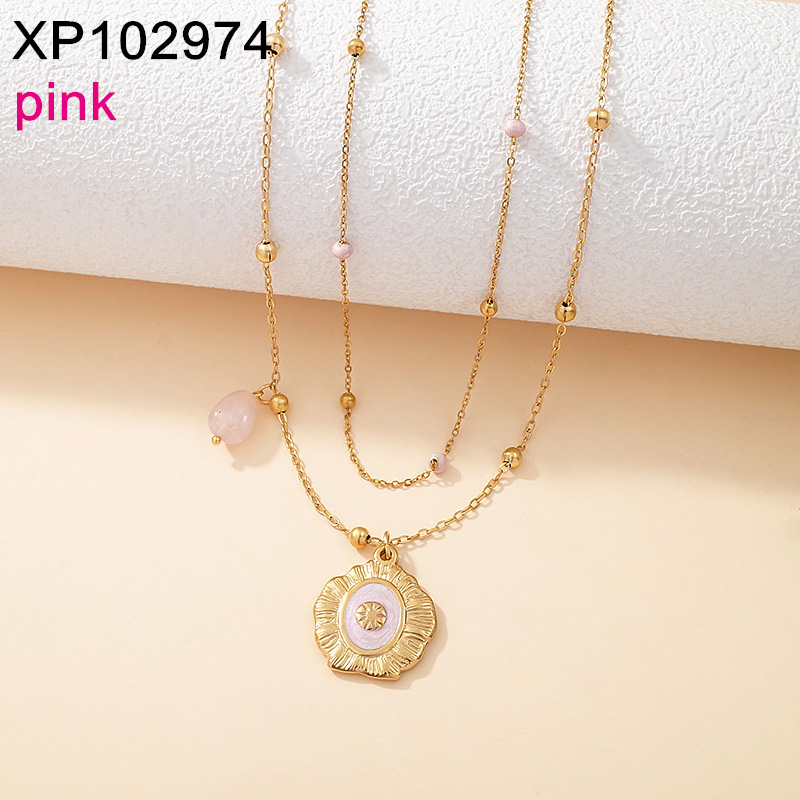 Level B Stainless Steel New Trendy Women Jewelry Two Layers Chain Drip Oil/Enamel Golden Pendant