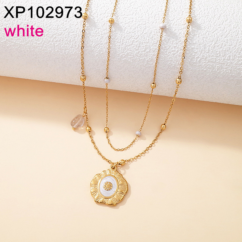 Level B Stainless Steel New Trendy Women Jewelry Two Layers Chain Drip Oil/Enamel Golden Pendant