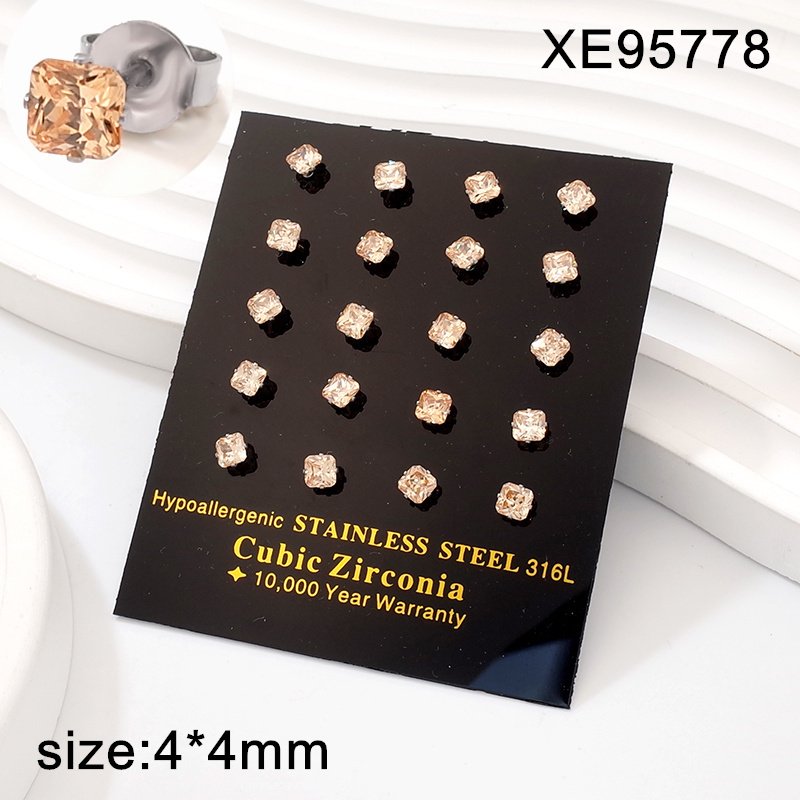 Level A Stainless Steel Jewelry Steel color Champagne Square Rounded Corner Zircon Earrings