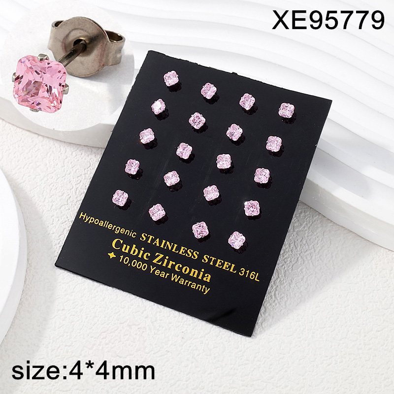 Home > Level A Stainless Steel Jewelry Steel color Pink Square Square Rounded Corner Zircon Earrings