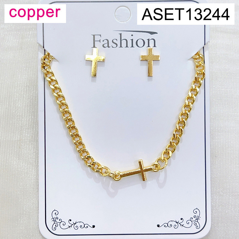 Level B Fashion Jewelry New Trendy Women Jewelry Cross Golden SET;Material:copper (cobre)