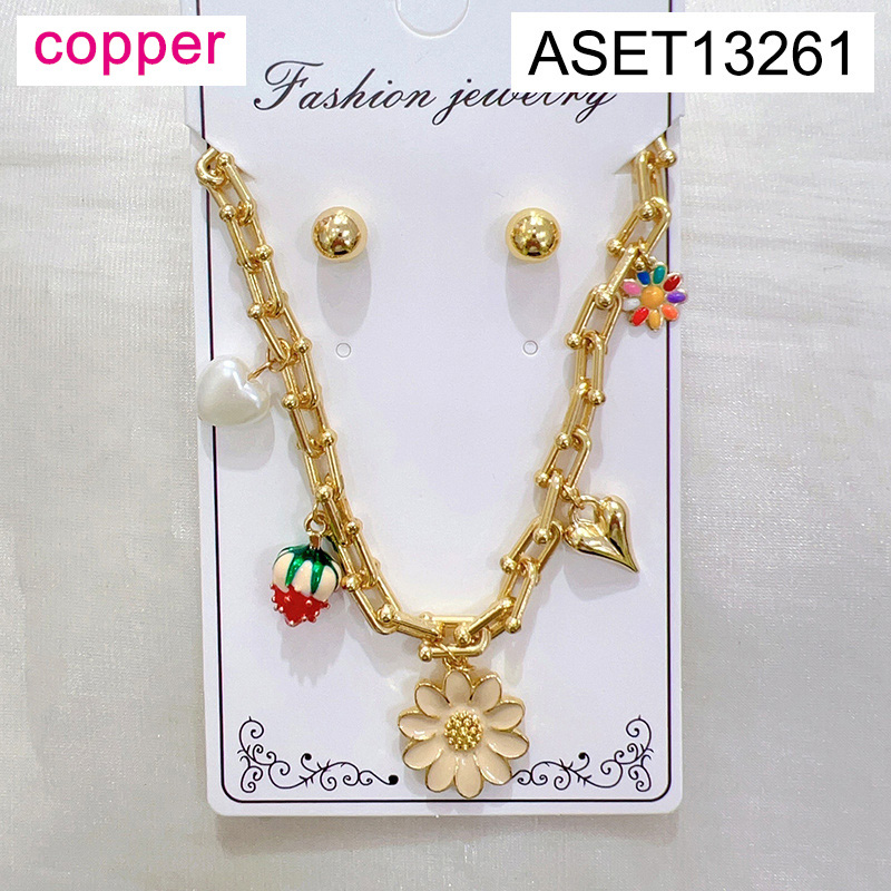 Home > Level B Fashion Jewelry New Trendy Women Jewelry Horseshoe buckle chain Drip Oil/Enamel Flower Heart Golden SET;Material:copper (cobre)