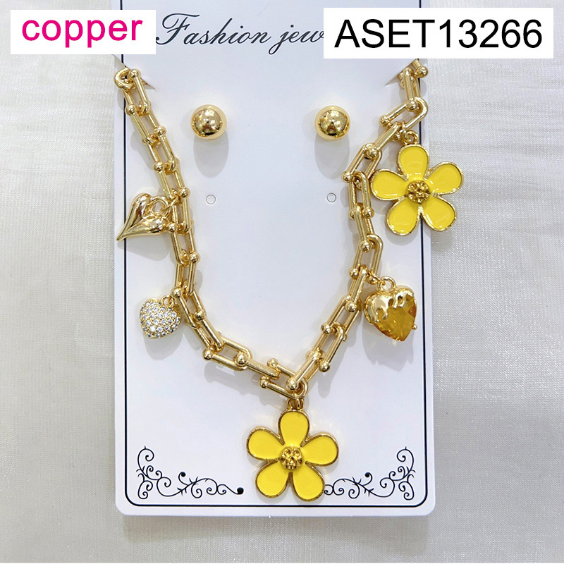 Home > Level B Fashion Jewelry New Trendy Women Jewelry Horseshoe buckle chain Drip Oil/Enamel Flower Heart Golden SET;Material:copper (cobre)