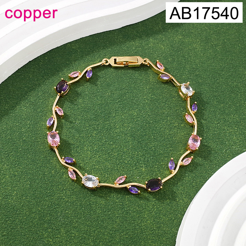 Level B Fashion Jewelry New Trendy Women Jewelry Mixed color Crystal zirconium Flower Golden Bracelet;Material:copper (cobre)