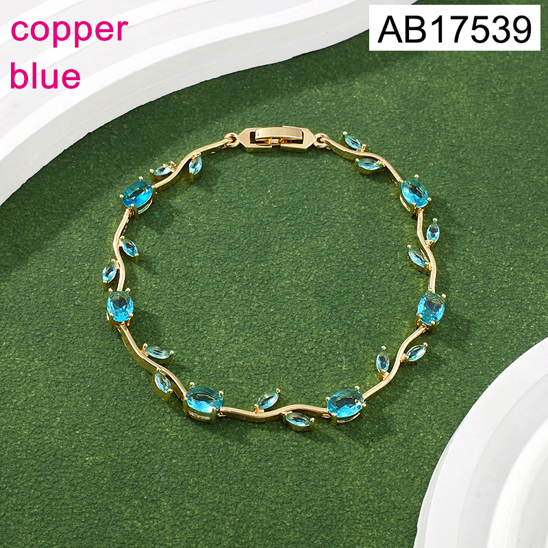 Home > Level B Fashion Jewelry New Trendy Women Jewelry Blue Crystal zirconium Flower Golden Bracelet;Material:copper (cobre)