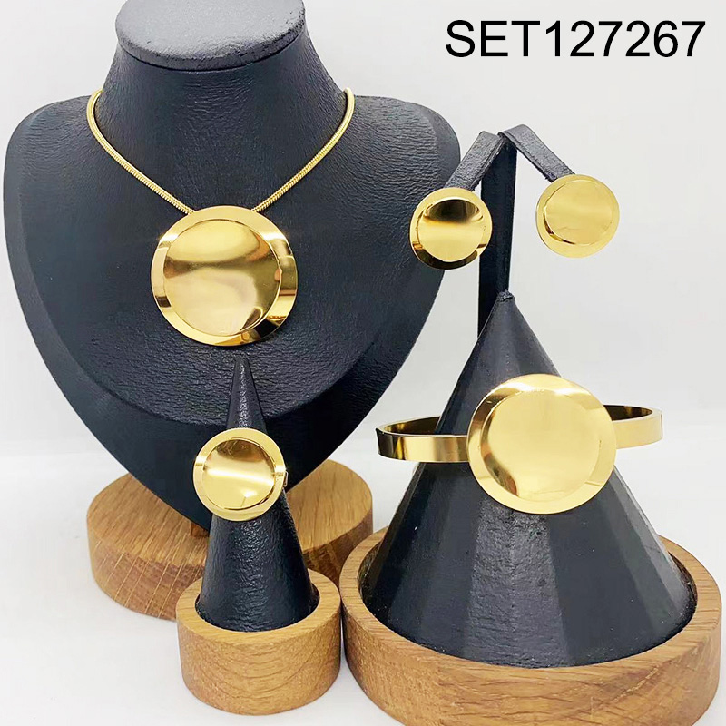 Level B Stainless Steel New Trendy Women Jewelry Round Golden 4pcs SET