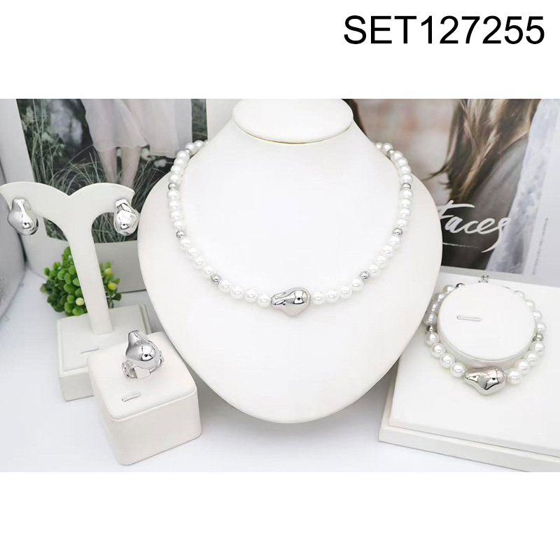 Level B Stainless Steel New Trendy Women Jewelry Pearl Style/Plastic Beads Steel color 4pcs SET