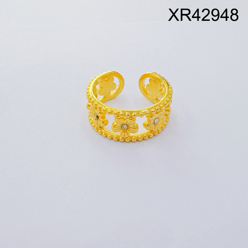 Level B Stainless Steel New Trendy Women Jewelry Flower Golden Open Rings;Ring size can be adjusted freely