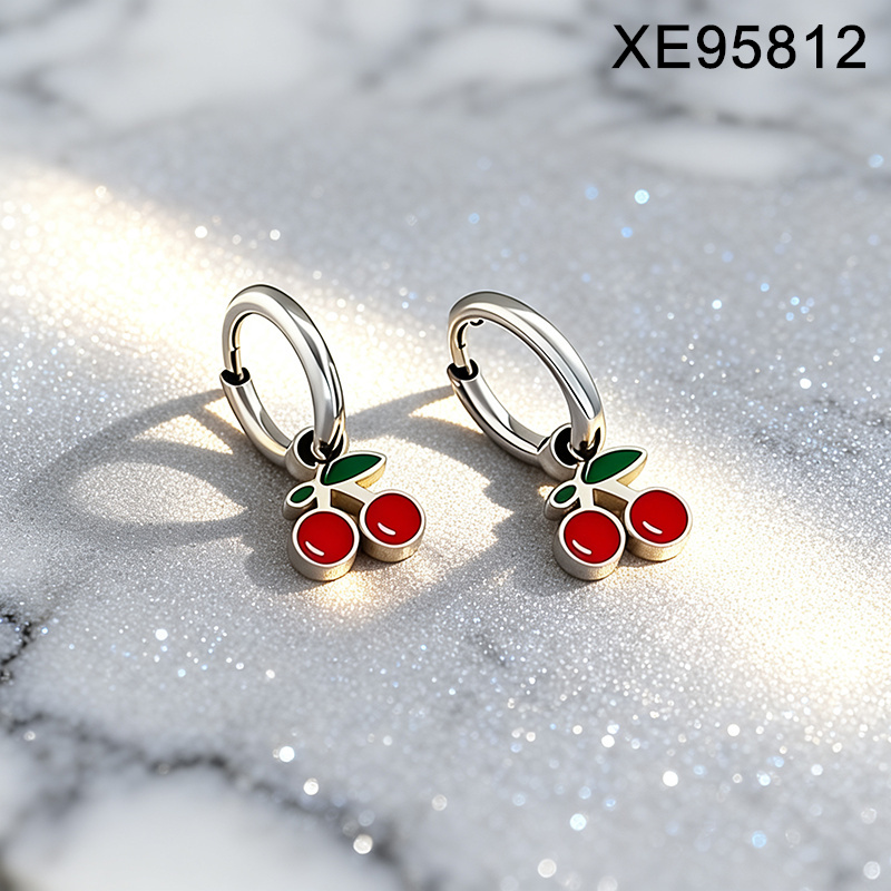 Level B Stainless Steel New Trendy Women Jewelry Summer fruit style Cherry Steel color Hoop Earrings