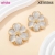Level B Stainless Steel New Trendy Women Jewelry Drip Oil/Enamel White Flower Golden Earrings