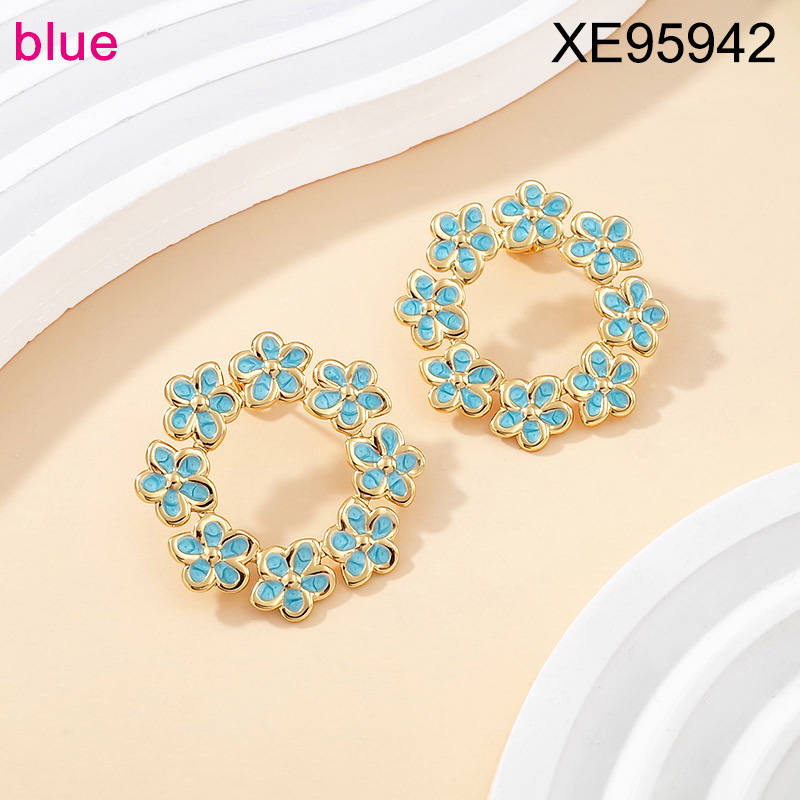 Level B Stainless Steel New Trendy Women Jewelry Drip Oil/Enamel Blue Flower Golden Earrings