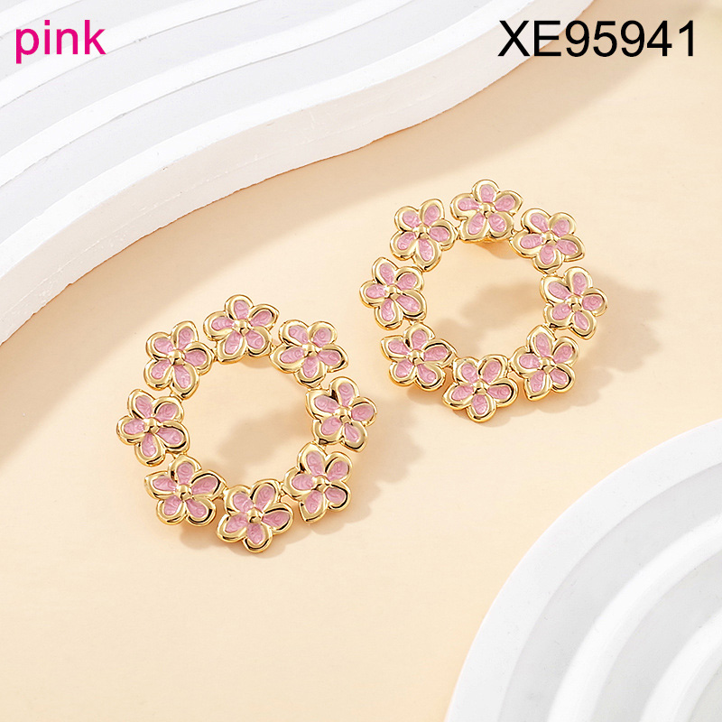 Home > Level B Stainless Steel New Trendy Women Jewelry Drip Oil/Enamel Pink Flower Golden Earrings