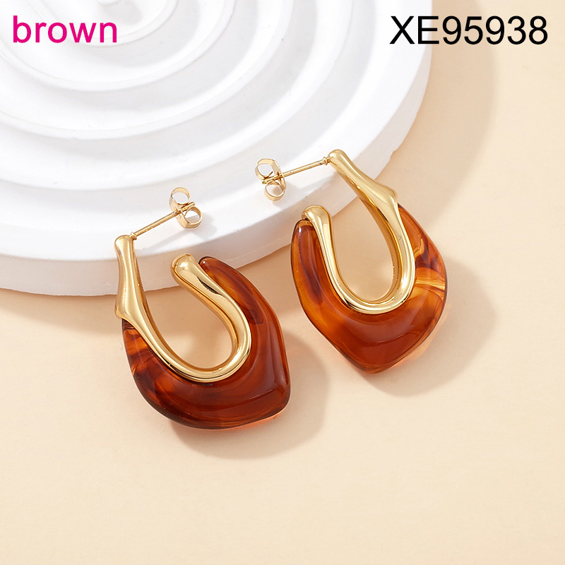 Home > Level B Stainless Steel New Trendy Women Jewelry Brown Resin Golden Earrings