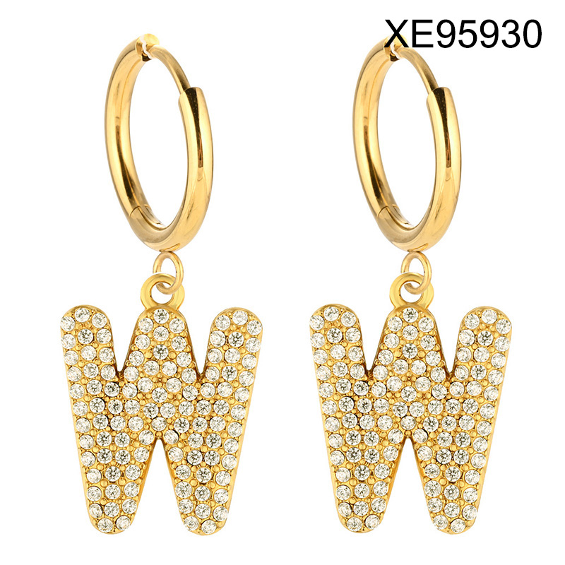 Home > Level B Stainless Steel New Trendy Women Jewelry Letter W Golden Hoop Earrings
