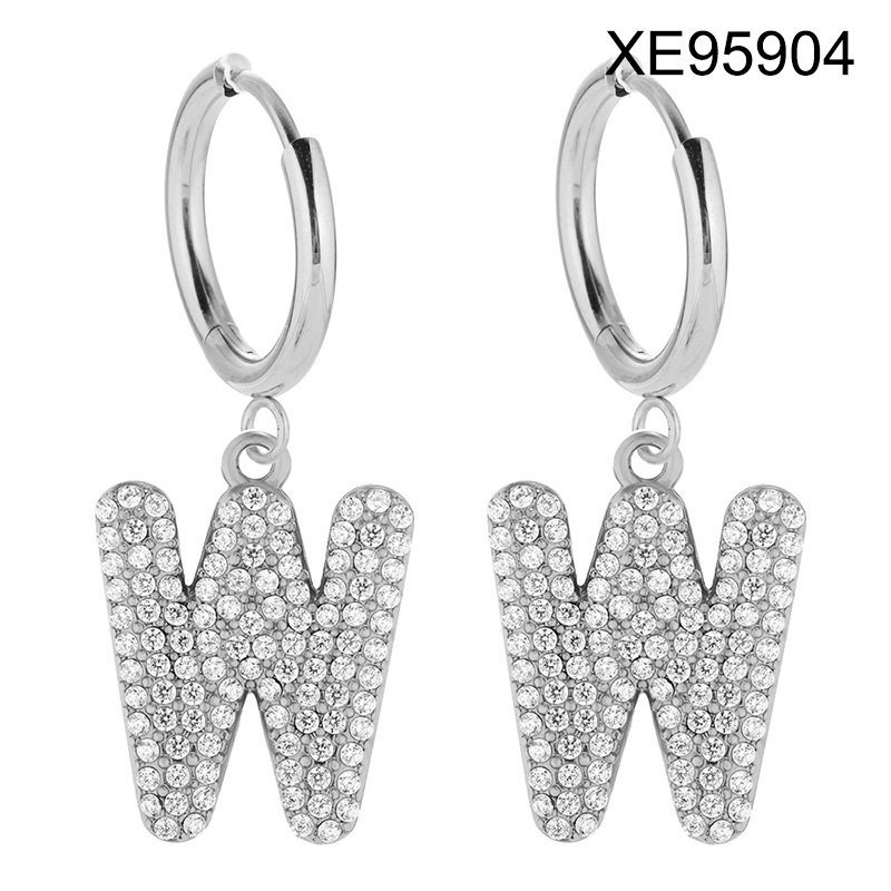 Home > Level B Stainless Steel New Trendy Women Jewelry Letter W Steel color Hoop Earrings