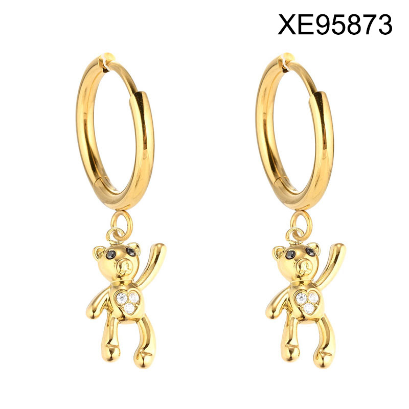 Home > Level B Stainless Steel New Trendy Women Jewelry Animal Bear Golden Hoop Earrings