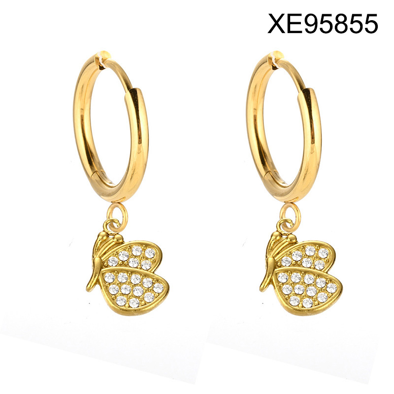 Home > Level B Stainless Steel New Trendy Women Jewelry Animal Butterfly Golden Hoop Earrings