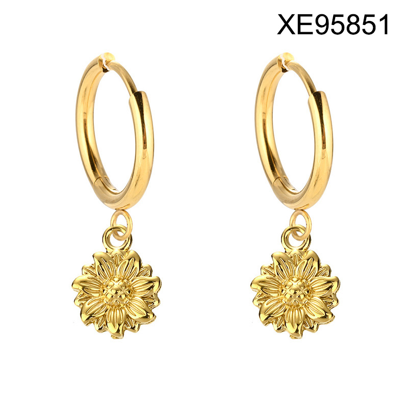 Home > Level B Stainless Steel New Trendy Women Jewelry Flower Golden Hoop Earrings