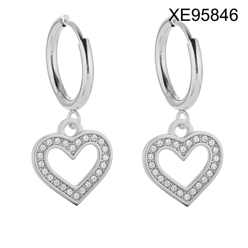 Home > Level B Stainless Steel New Trendy Women Jewelry Heart Steel color Mother's Day Hoop Earrings