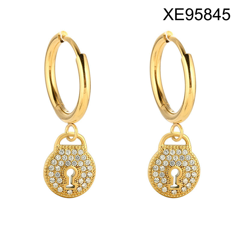 Home > Level B Stainless Steel New Trendy Women Jewelry Lock Golden Valentine's Day Hoop Earrings