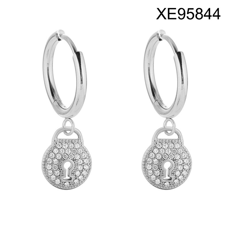 Level B Stainless Steel New Trendy Women Jewelry Lock Steel color Valentine's Day Hoop Earrings