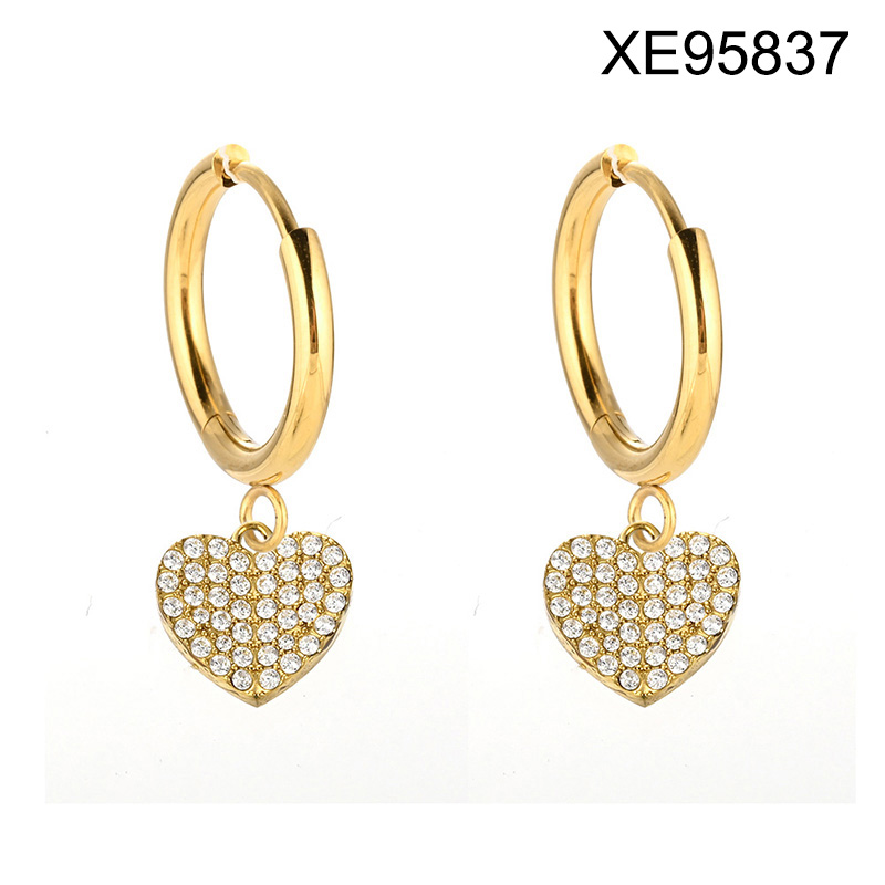 Home > Level B Stainless Steel New Trendy Women Jewelry Heart Golden Mother's Day Hoop Earrings