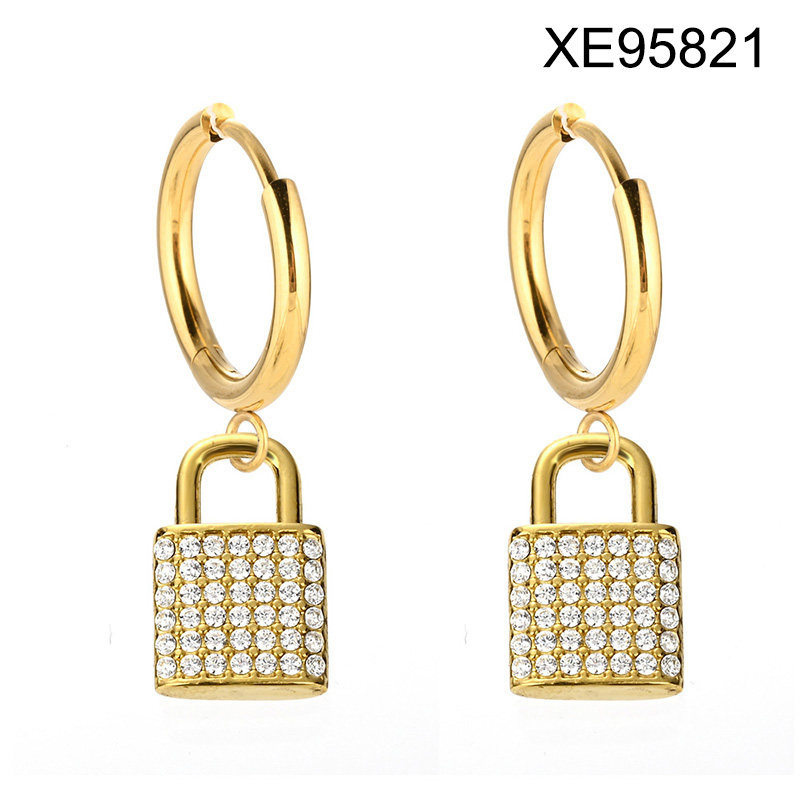 Home > Level B Stainless Steel New Trendy Women Jewelry Lock Golden Valentine's Day Hoop Earrings