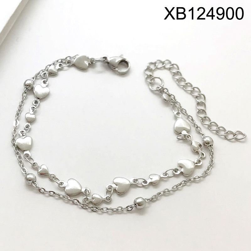 Level B Stainless Steel New Trendy Women Jewelry Two Layers Chain Heart Steel color Bracelet