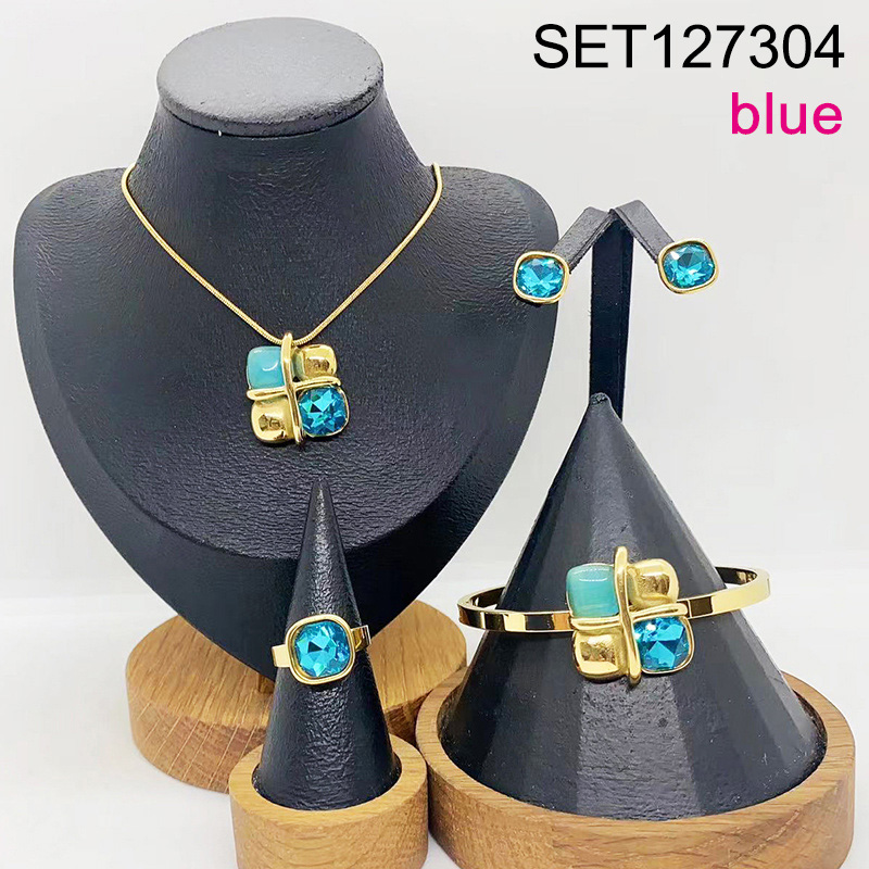 Level B Stainless Steel New Trendy Women Jewelry Blue Stone Square Golden 4pcs SET