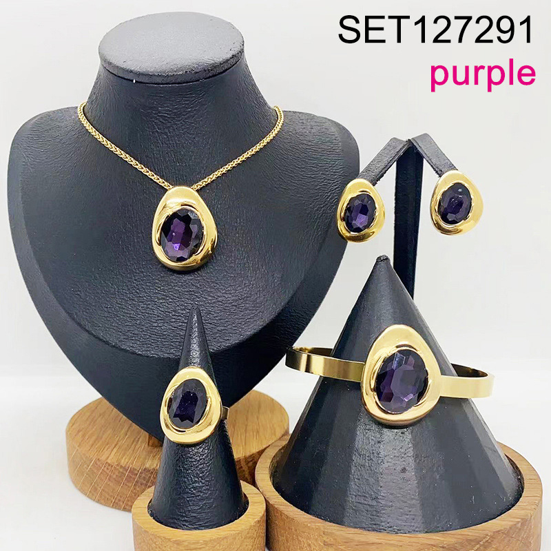Home > Level B Stainless Steel New Trendy Women Jewelry Purple Stone Geometry Golden 4pcs SET